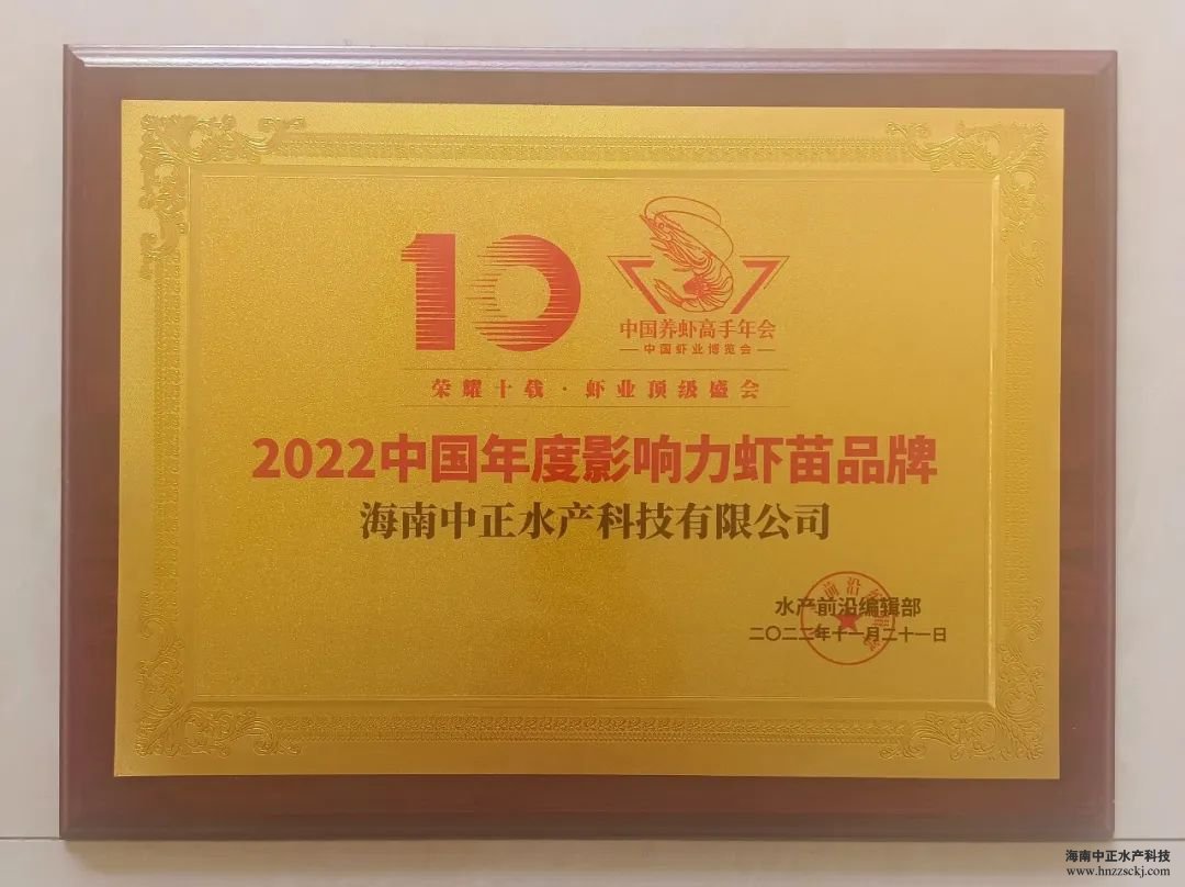 【企業(yè)動(dòng)態(tài)】熱烈恭賀中正水產(chǎn)榮獲“2022中國(guó)年度影響力品牌蝦苗